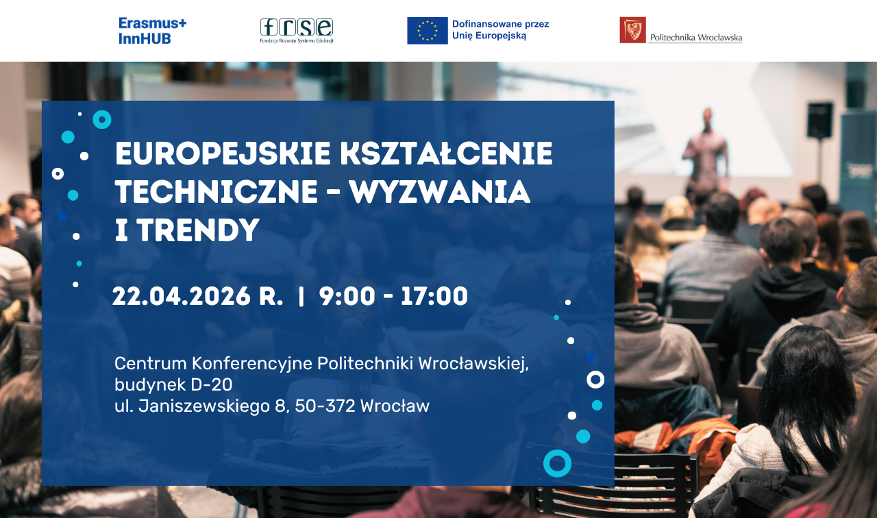 Fundacja Rozwoju Systemu Edukacji (FRSE) we współpracy z Politechniką Wrocławską zaprasza na konferencję „Europejskie kształcenie techniczne – wyzwania i trendy”, która odbędzie się 22 kwietnia 2026 roku we Wrocławiu, a poświęconą przyszłości inżynierii i internacjonalizacji dydaktyki.